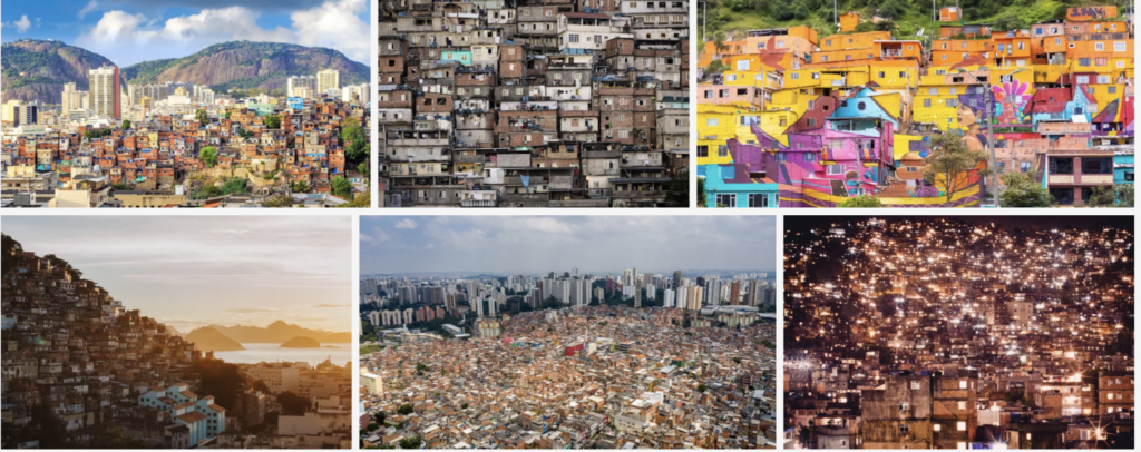 We recommend using more nuanced terms that reflect the specific context of your project. For example, if your project takes place in Brazil, using a specific term like ”favela” (which yields 8.5k results on Adobe) provides a clear depiction of the density of this urban locale, bringing a visual understanding of how poverty manifests in a certain location.
